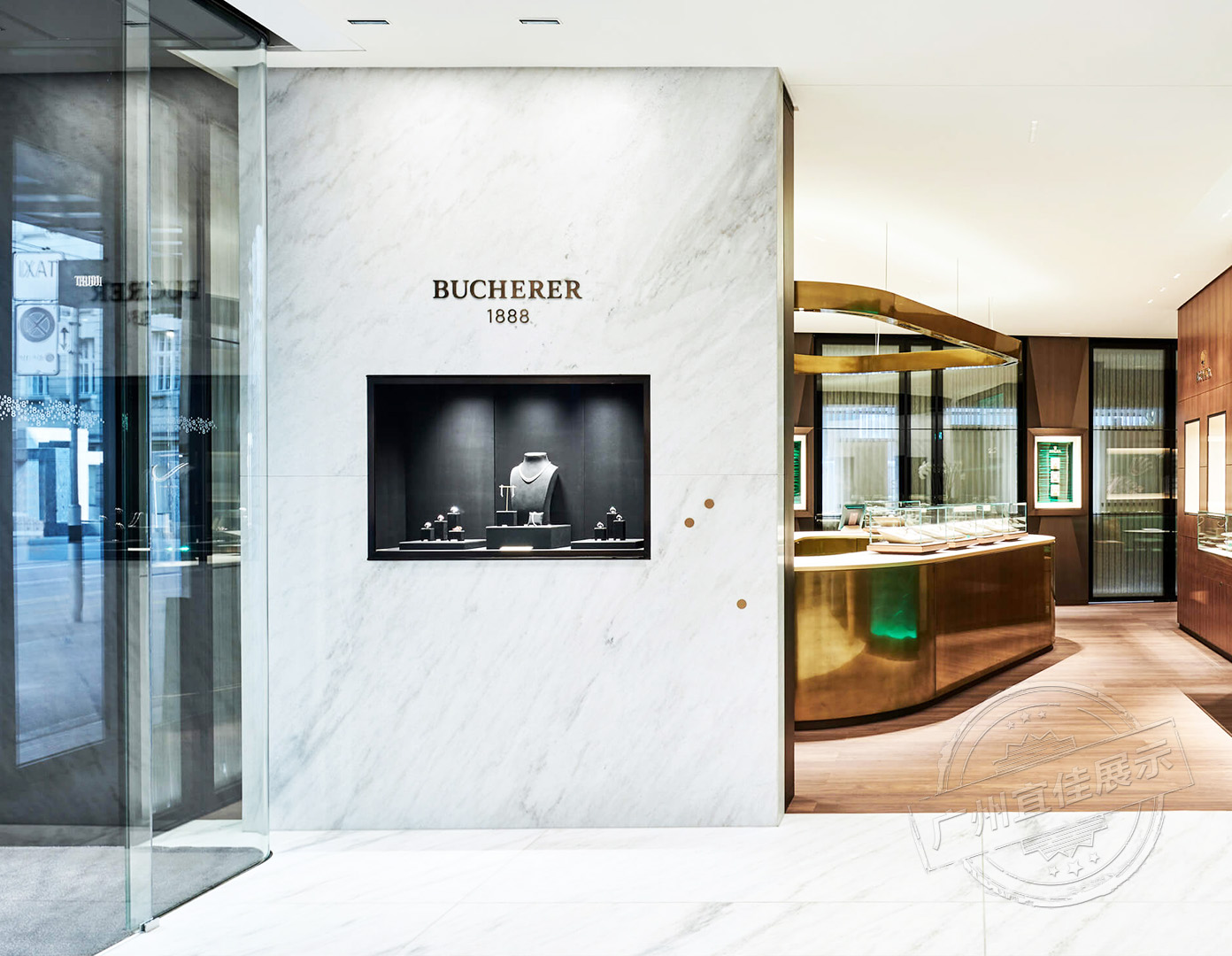 宝齐莱腕表珠宝展柜店内整体气氛温润而宜人,设计风格高贵典雅,简洁明快,细节一丝不苟,诠释了品牌对完美的追求及执着。顾客可以于轻松惬意的环境中,仔细观赏陈列柜内的宝齐莱腕表。