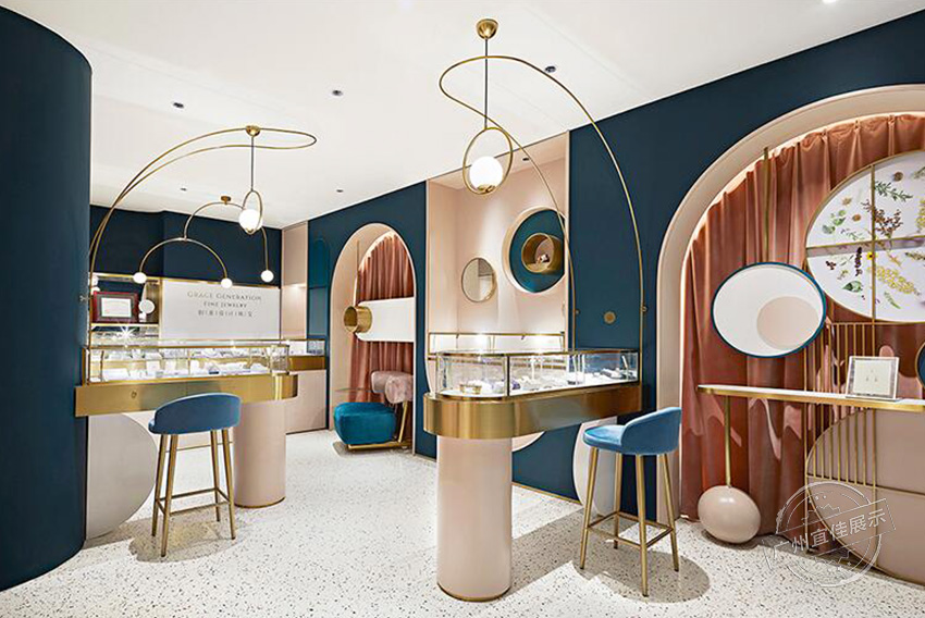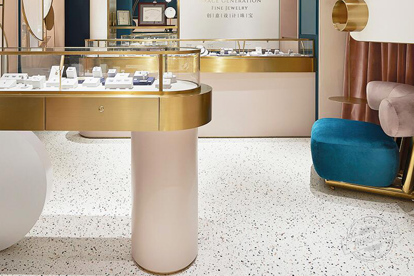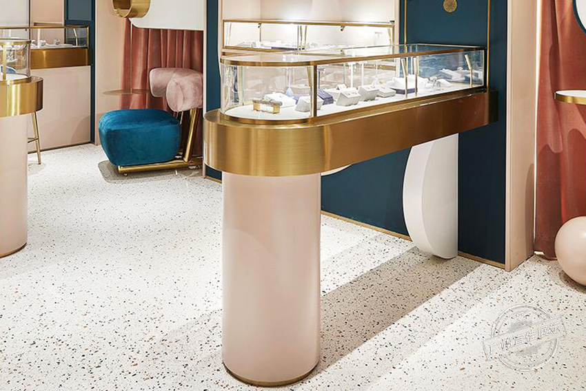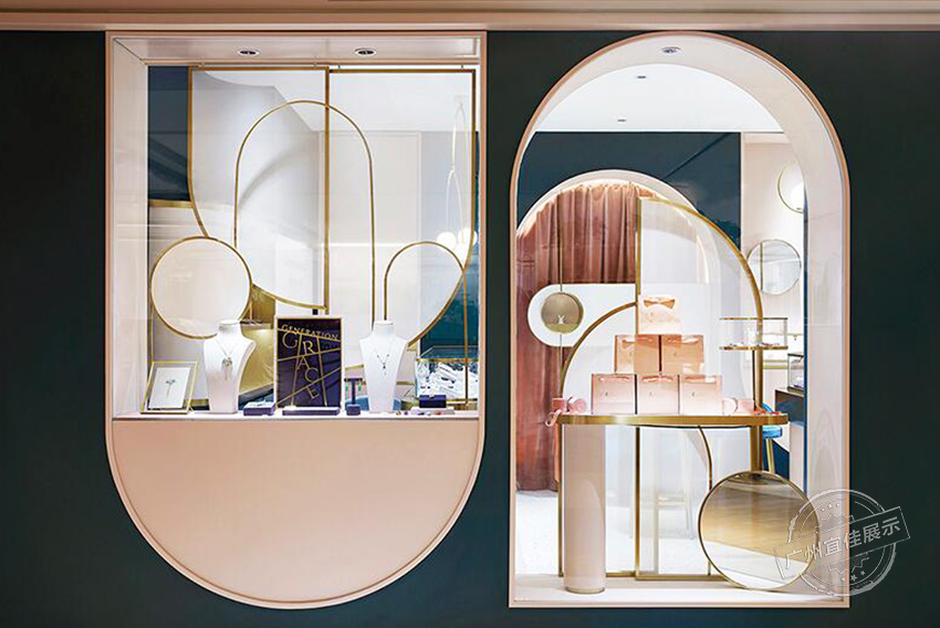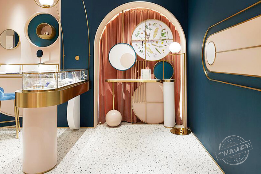 [宜佳展示]设计粉色烤漆相结合的的不锈钢烤漆珠宝展柜方案,展示出现代感和女性化特质。不锈钢材质保持了展柜的耐腐蚀、高硬度等优点,同时粉色烤漆带来了柔和的色彩和温馨的感觉。展柜外观简约美观,女性客户特别喜欢这种展示方式。展柜内部采用LED灯,为珠宝提供更好的照明效果,让珠宝更加璀璨动人。