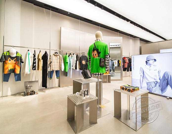 此店的潮牌服装展柜,设计具有现代感和时尚感。除了独特,而且还创意十足,配色鲜明,光线柔和。[宜佳展示]兼顾了可调节高度和角度、稳定性强的特点外,还易于组装和拆卸。让潮流时尚的品牌服装产品,展示效果突出,能够吸引目光,提高品牌价值。