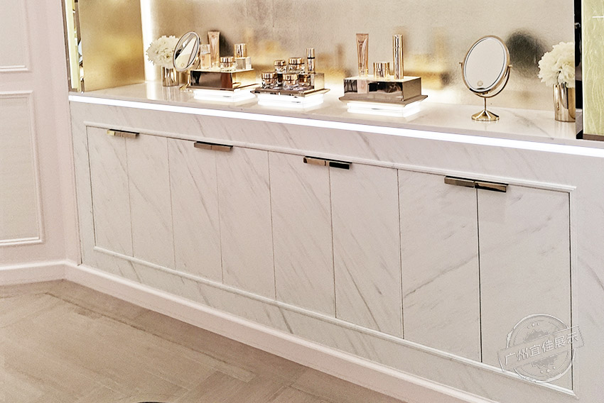 雅诗兰黛Estee Lauder(白金系列主题)化妆品展柜,独特环境布局,极具色彩张力形象柜台,个性化购物体验,无疑是消费者所青睐的。同时也让消费者经历三个心理变化:搜寻,体验,购买,从而提升整体购物体验以及视觉印象。高端质感,处处细节可见!