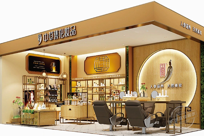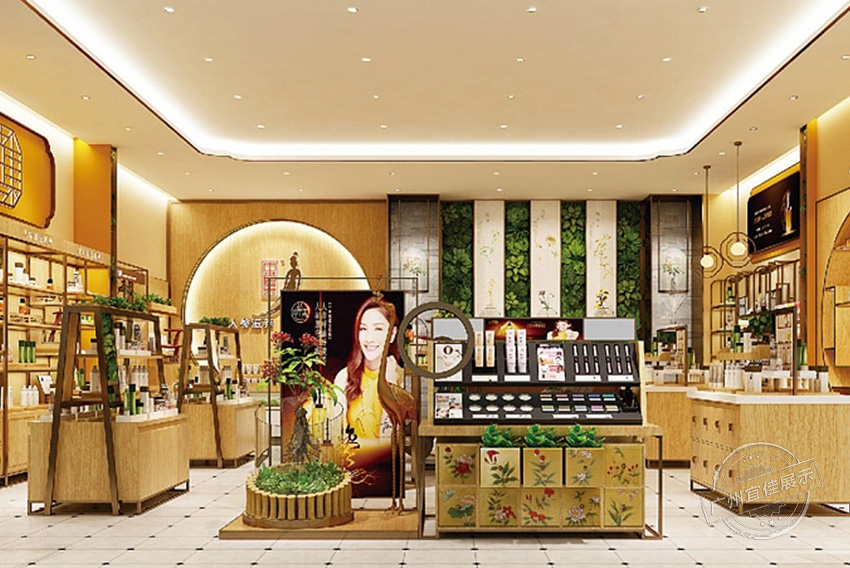 中草集 化妆品展柜整体风格沿袭中草集的统一标准品牌形象——“绿色自然”为准,用强大的文化自信和情怀,追溯于中国文化,把东方哲学融入品牌概念,打造出了具有东方美学的效果!
